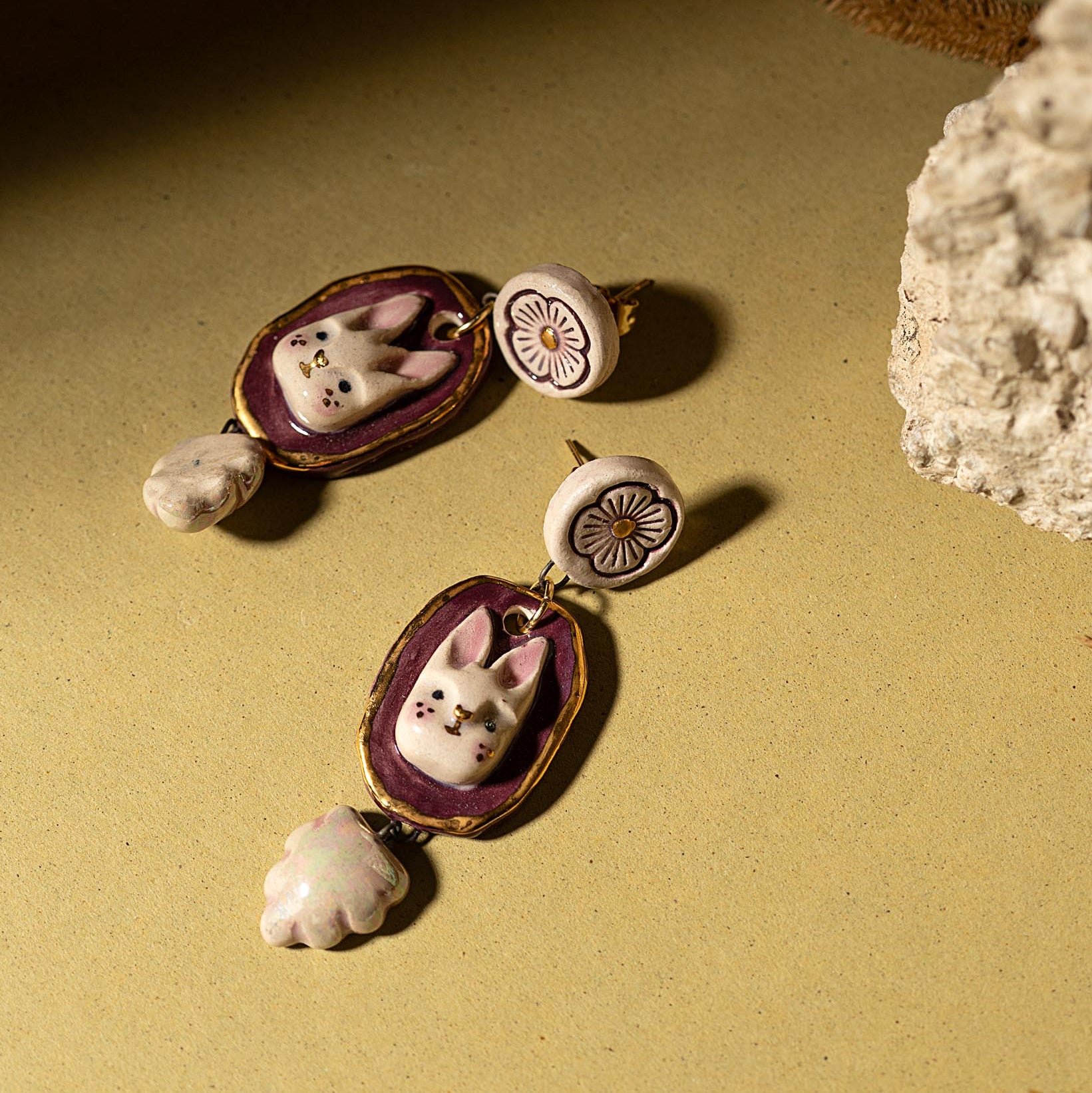 Materiales: cerámica esmaltada a mano + base en acero inoxidable dorado.