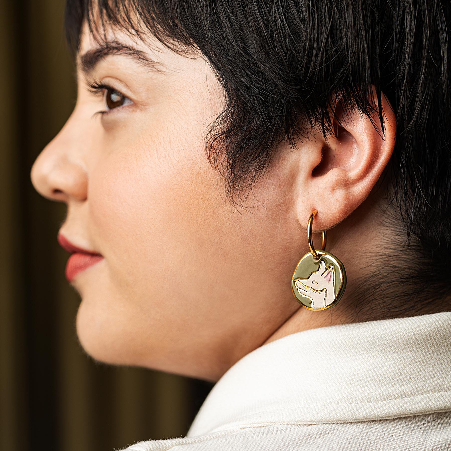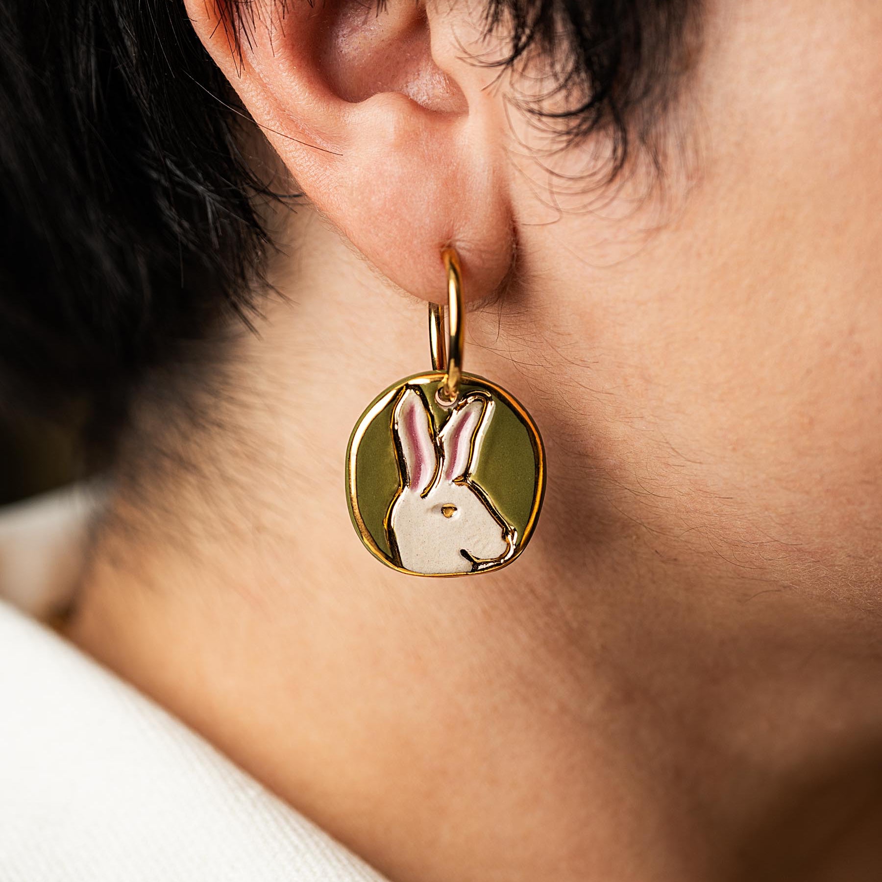 - Materiales: cerámica esmaltada a mano + aro de acero inoxidable dorado.