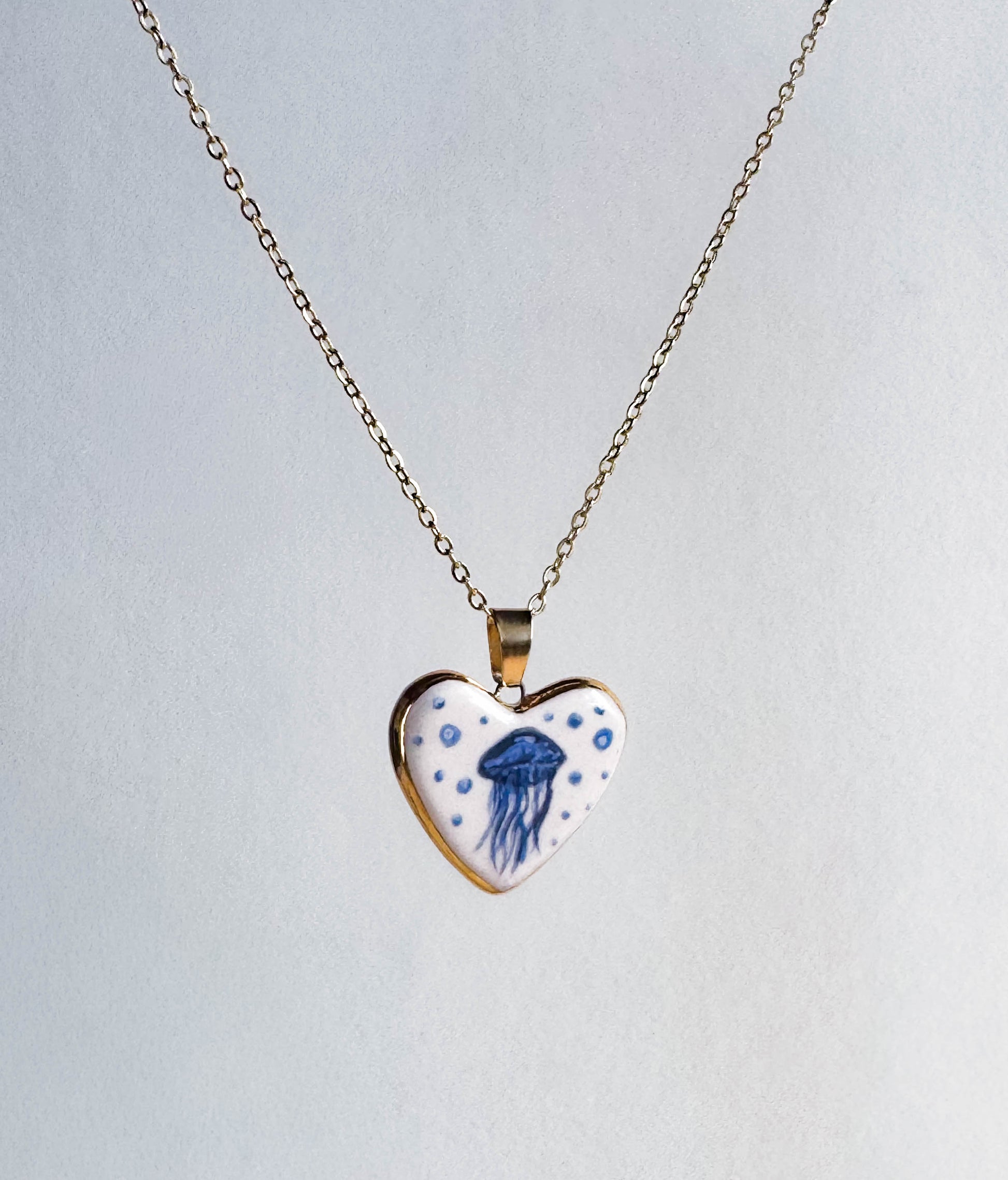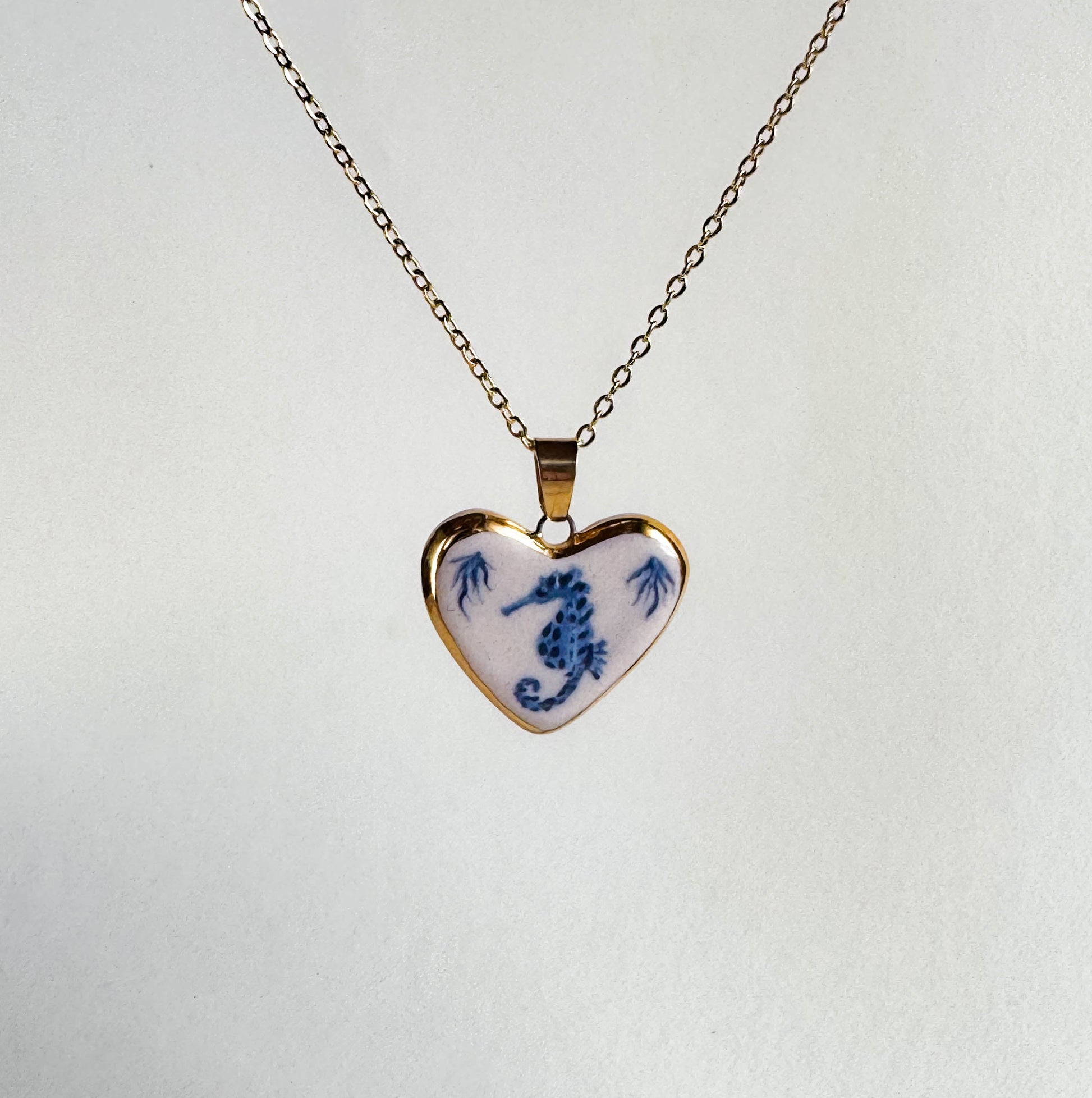 Pieza bordeada en oro y colgando de una cadena de acero inoxidable ✨